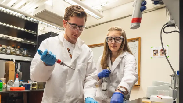 Jackrel and members of her team, including Jeremy Ryan and Macy Sprunger (pictured above), both graduate students in chemistry and co-authors of the new paper, developed a new yeast model system that they used to determine that protein disaggregases like the ones that can dissolve proteins that accumulate in ALS can also dissolve sarcoma proteins.